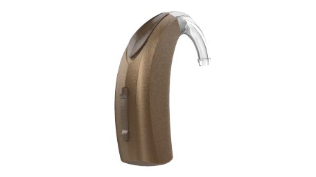 O tipo de aparelho auditivo mais comum do mundo. Disponível em padronizado, mini ou power.